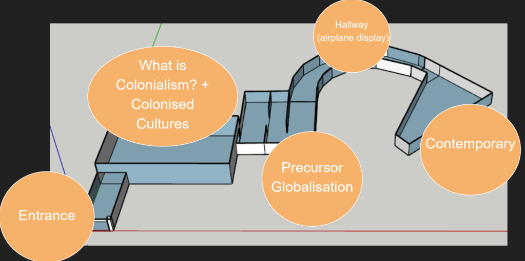 Travelling through European Colonialism has been intentionally designed to be accessible to visitors of all ages and educational backgrounds and assumes minimal specialised or theoretical pre-existing knowledge of this part of history. With this in mind, we have curated the exhibition to give an overview of a part of European Colonialism that can be easily understood by virtually everyone, while not oversimplifying or obscuring vital information and experiences born out of the application of this foreign policy. Points made in the exhibition concept and each room’s theme are exemplified in a clear and understandably manner through the selected objects and their accompanying captions. the progression and timeline of the effects of colonialism are conveniently mirrored in the exhibition layout and one’s progression through the rooms, which will aid the understanding of visitors. The application of digital strategies will offer visitors another avenue to learn more about each object and theme in order to further solidify their understanding. These include strategies such as the use of QR codes attached to each object which once scanned lead the visitor to a more in-depth audio commentary. Besides that, the use of interactive touchscreens for each object promotes a closer connection between the viewer, the object and the exhibition as a whole. Handy booklets will be available in both digital and physical form in order to help the visitor find out more about the exhibition and individual rooms.